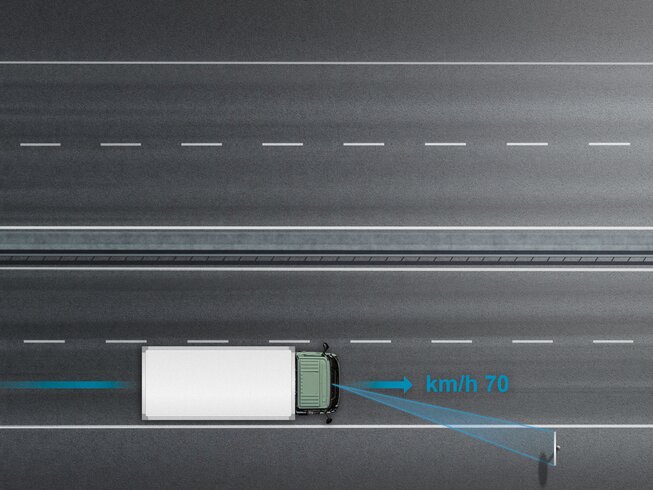 Der intelligente Geschwindigkeitsassistent (ISA) ist ein System, das den Fahrer bei der Einhaltung der für die Fahrsituation angemessenen Geschwindigkeit unterstützt, indem es ihm eine visuelle und akustische Rückmeldung über die geltende Geschwindigkeitsbegrenzung gibt. ISA sammelt die hierfür notwendigen Informationen direkt über eine Kamera, die Verkehrsschilder und Signale erfasst, und ein ständig aktiviertes Geolokalisierungssystem, das mit dem Kartendienst verbunden ist.