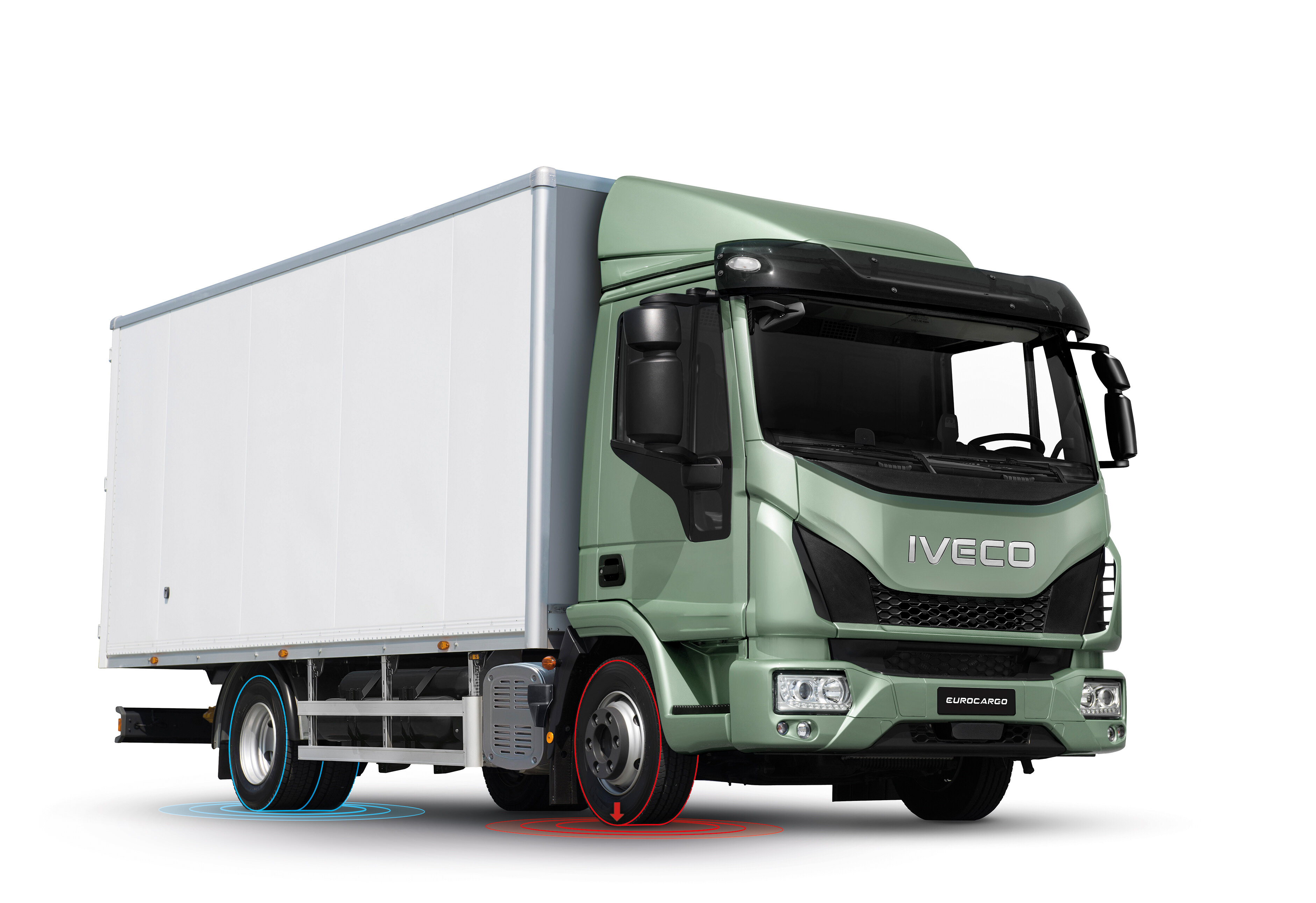 Der Eurocargo ist wahlweise mit 6-/9-Gang-Schaltgetriebe oder 8-Gang-ZF-Automatikgetriebe erhältlich, sodass für jeden Einsatz der optimale Antriebsstrang gefunden werden kann. Für besondere Einsätze ist auch ein 5-Gang-Allison-Automatikgetriebe erhältlich.